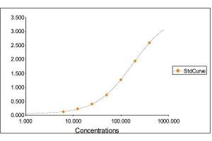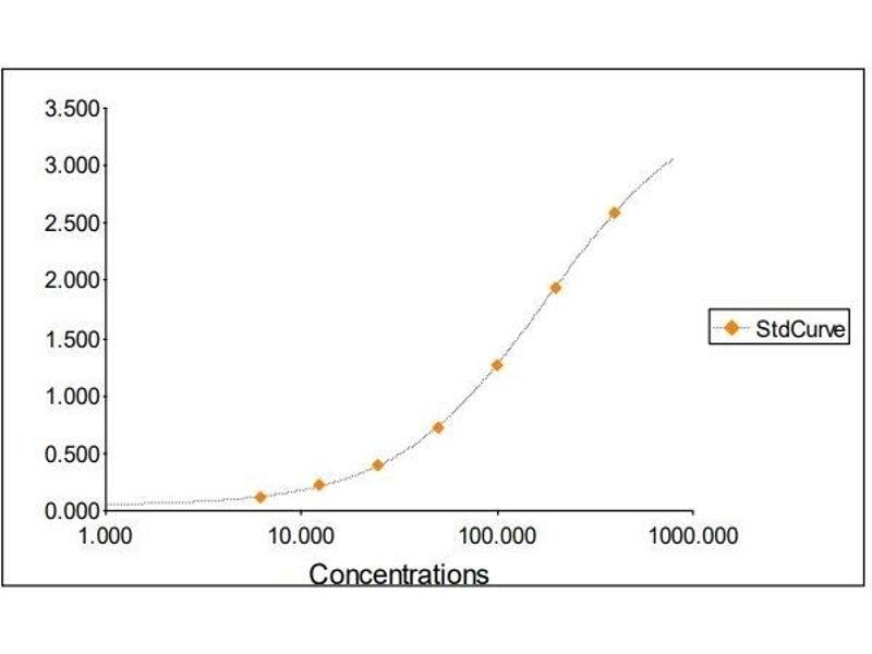 2. The Standards and the test sample(s) should be loaded into the ELISA wells as quickly as possible to avoid a shift in OD readings. Using a multichannel pipette would reduce this occurrence. Pipette 100 μL of Standard 0 (0.0 ng/mL) in duplicate Standard 1 (6.25 ng/mL) in duplicate Standard 2 (12.50 ng/mL) in duplicate Standard 3 (25 ng/mL) in duplicate Standard 4 (50 ng/mL) in duplicate Standard 5 (100 ng/mL) in duplicate Standard 6 (200 ng/mL) in duplicate Standard 7 (400 ng/mL) in duplicate