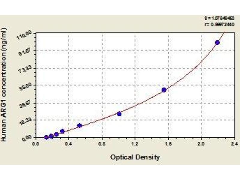 - This assay employs the quantitative sandwich enzyme immunoassay technique. Antibody specific for ARG1 has been pre-coated onto a microplate. Standards and samples are pipetted into the wells and any ARG1 present is bound by the immobilized antibody. After removing any unbound substances, a biotin-conjugated antibody specific for ARG1 is added to the wells. After washing, avidin conjugated Horseradish Peroxidase (HRP) is added to the wells. Following a wash to remove any unbound avidin-enzyme reagent, a substrate solution is added to the wells and color develops in proportion to the amount of ARG1 bound in the initial step. The color development is stopped and the intensity of the color is measured.