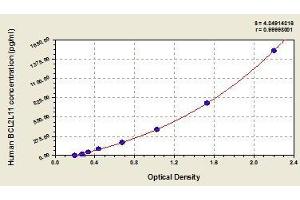 - Antibody specific for BCL2L11 has been pre-coated onto a microplate. Standards and samples are pipetted into the wells and any BCL2L11 present is bound by the immobilized antibody. After removing any unbound substances, a biotin-conjugated antibody specific for BCL2L11 is added to the wells. After washing, avidin conjugated Horseradish Peroxidase (HRP) is added to the wells. Following a wash to remove any unbound avidin-enzyme reagent, a substrate solution is added to the wells and color develops in proportion to the amount of BCL2L11 bound in the initial step. The color development is stopped and the intensity of the color is measured.