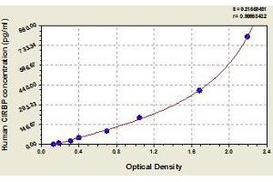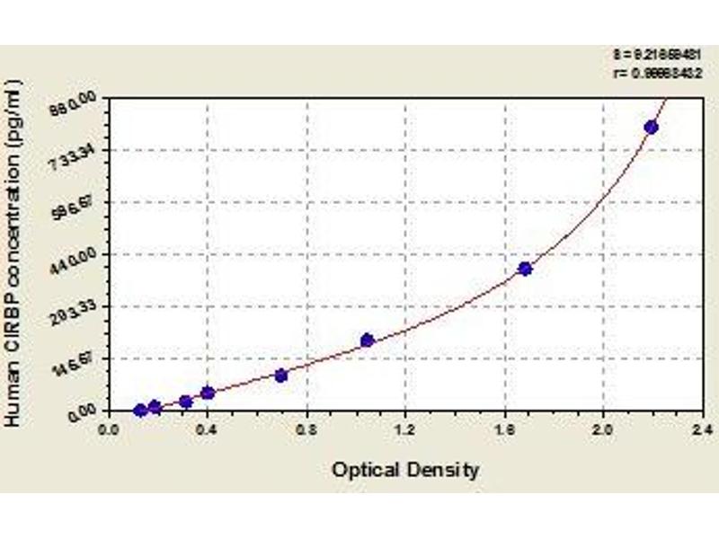 Antibody specific for CIRBP has been pre-coated onto a microplate. Standards and samples are pipetted into the wells and any CIRBP present is bound by the immobilized antibody. After removing any unbound substances, a biotin-conjugated antibody specific for CIRBP is added to the wells. After washing, avidin conjugated Horseradish Peroxidase (HRP) is added to the wells. Following a wash to remove any unbound avidin-enzyme reagent, a substrate solution is added to the wells and color develops in proportion to the amount of CIRBP bound in the initial step. The color development is stopped and the intensity of the color is measured.