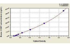 For the quantitative determination of mouse cartilage oligomeric matrix protein (COMP) concentrations in serum, plasma, tissue homogenates.