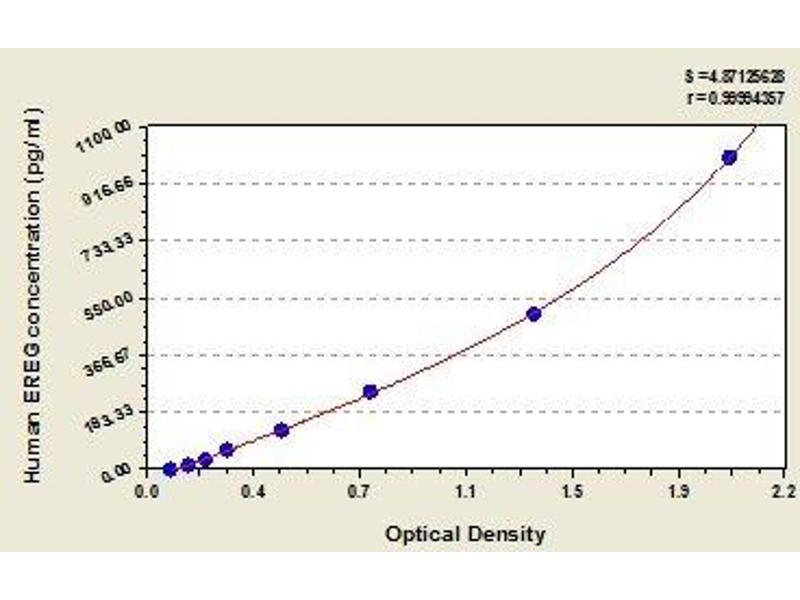 - This assay employs the quantitative sandwich enzyme immunoassay technique. Antibody specific for EREG has been pre-coated onto a microplate. Standards and samples are pipetted into the wells and any EREG present is bound by the immobilized antibody. After removing any unbound substances, a biotin-conjugated antibody specific for EREG is added to the wells. After washing, avidin conjugated Horseradish Peroxidase (HRP) is added to the wells. Following a wash to remove any unbound avidin-enzyme reagent, a substrate solution is added to the wells and color develops in proportion to the amount of EREG bound in the initial step. The color development is stopped and the intensity of the color is measured.