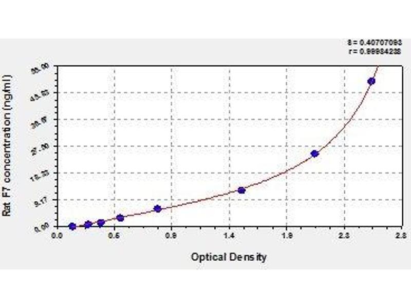 - Antibody specific for F7 has been pre-coated onto a microplate. Standards and samples are pipetted into the wells and any F7 present is bound by the immobilized antibody. After removing any unbound substances, a biotin-conjugated antibody specific for F7 is added to the wells. After washing, avidin conjugated Horseradish Peroxidase (HRP) is added to the wells. Following a wash to remove any unbound avidin-enzyme reagent, a substrate solution is added to the wells and color develops in proportion to the amount of F7 bound in the initial step. The color development is stopped and the intensity of the color is measured.