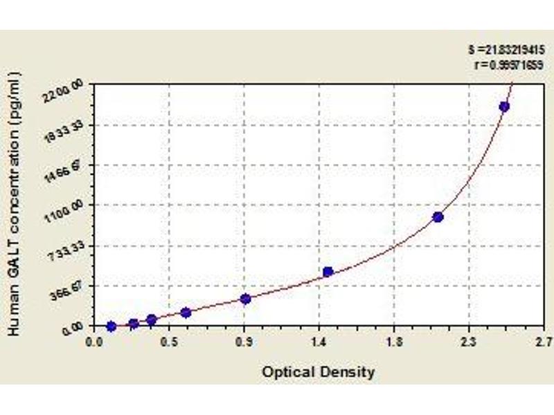 - Antibody specific for GALT has been pre-coated onto a microplate. Standards and samples are pipetted into the wells and any GALT present is bound by the immobilized antibody. After removing any unbound substances, a biotin-conjugated antibody specific for GALT is added to the wells. After washing, avidin conjugated Horseradish Peroxidase (HRP) is added to the wells. Following a wash to remove any unbound avidin-enzyme reagent, a substrate solution is added to the wells and color develops in proportion to the amount of GALT bound in the initial step. The color development is stopped and the intensity of the color is measured.