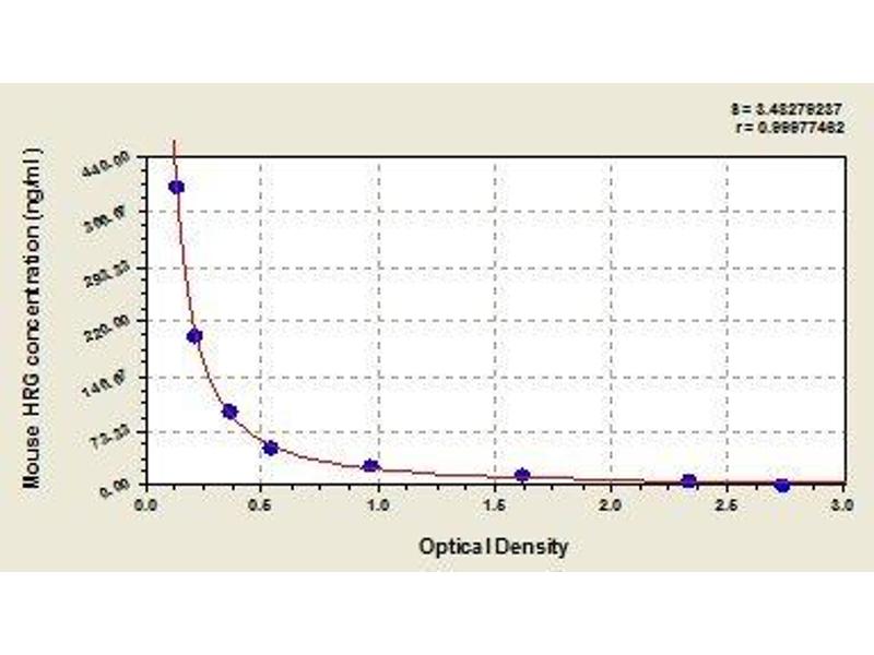- Antibody specific for HRG has been pre-coated onto a microplate. Standards and samples are pipetted into the wells and any HRG present is bound by the immobilized antibody. After removing any unbound substances, a biotin-conjugated antibody specific for HRG is added to the wells. After washing, avidin conjugated Horseradish Peroxidase (HRP) is added to the wells. Following a wash to remove any unbound avidin-enzyme reagent, a substrate solution is added to the wells and color develops in proportion to the amount of HRG bound in the initial step. The color development is stopped and the intensity of the color is measured.