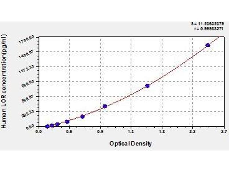 - Antibody specific for LOR has been pre-coated onto a microplate. Standards and samples are pipetted into the wells and any LOR present is bound by the immobilized antibody. After removing any unbound substances, a biotin-conjugated antibody specific for LOR is added to the wells. After washing, avidin conjugated Horseradish Peroxidase (HRP) is added to the wells. Following a wash to remove any unbound avidin-enzyme reagent, a substrate solution is added to the wells and color develops in proportion to the amount of LOR bound in the initial step. The color development is stopped and the intensity of the color is measured.