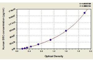 - Antibody specific for SRC has been pre-coated onto a microplate. Standards and samples are pipetted into the wells and any SRC present is bound by the immobilized antibody. After removing any unbound substances, a biotin-conjugated antibody specific for SRC is added to the wells. After washing, avidin conjugated Horseradish Peroxidase (HRP) is added to the wells. Following a wash to remove any unbound avidin-enzyme reagent, a substrate solution is added to the wells and color develops in proportion to the amount of SRC bound in the initial step. The color development is stopped and the intensity of the color is measured.