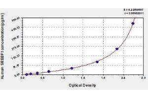 - Antibody specific for SREBF1 has been pre-coated onto a microplate. Standards and samples are pipetted into the wells and any SREBF1 present is bound by the immobilized antibody. After removing any unbound substances, a biotin-conjugated antibody specific for SREBF1 is added to the wells. After washing, avidin conjugated Horseradish Peroxidase (HRP) is added to the wells. Following a wash to remove any unbound avidin-enzyme reagent, a substrate solution is added to the wells and color develops in proportion to the amount of SREBF1 bound in the initial step. The color development is stopped and the intensity of the color is measured.