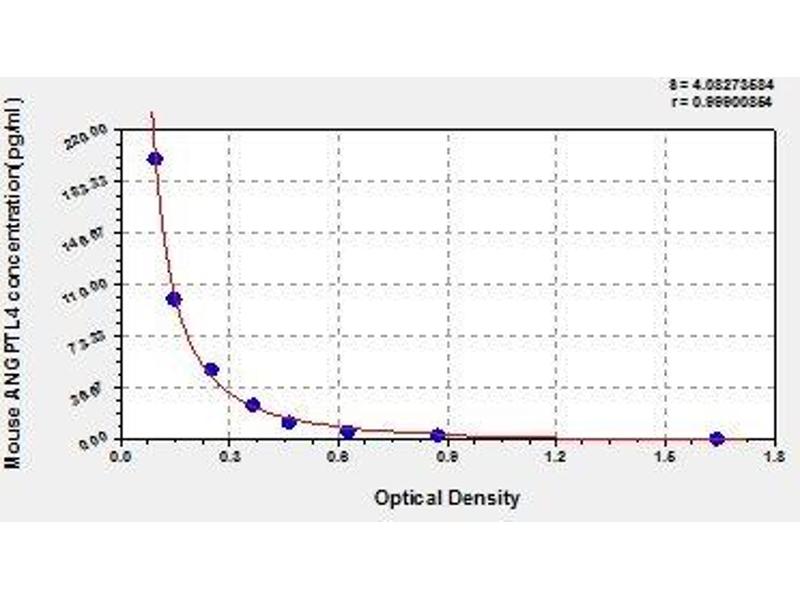 - This assay employs the competitive inhibition enzyme immunoassay technique. The microtiter plate provided in this kit has been pre-coated with ANGPTL4. Standards or samples are added to the appropriate microtiter plate wells with Horseradish Peroxidase (HRP) conjugated antibody preparation specific for ANGPTL4. The competitive inhibition reaction is launched between with pre-coated ANGPTL4 and ANGPTL4 in samples. A substrate solution is added to the wells and the color develops in opposite to the amount of ANGPTL4 in the samples. The color development is stopped and the intensity of the color is measured.