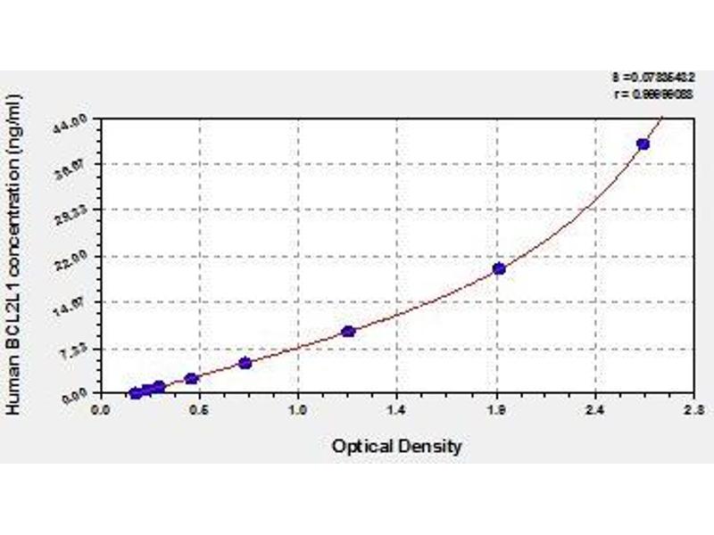 - Antibody specific for BCL2L1 has been pre-coated onto a microplate. Standards and samples are pipetted into the wells and any BCL2L1 present is bound by the immobilized antibody. After removing any unbound substances, a biotin-conjugated antibody specific for BCL2L1 is added to the wells. After washing, avidin conjugated Horseradish Peroxidase (HRP) is added to the wells. Following a wash to remove any unbound avidin-enzyme reagent, a substrate solution is added to the wells and color develops in proportion to the amount of BCL2L1 bound in the initial step. The color development is stopped and the intensity of the color is measured.