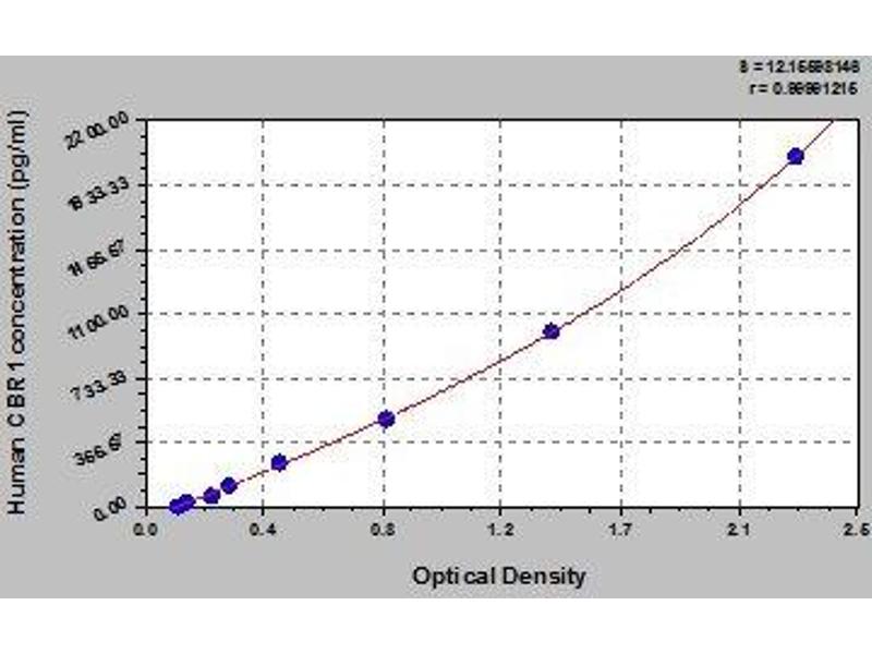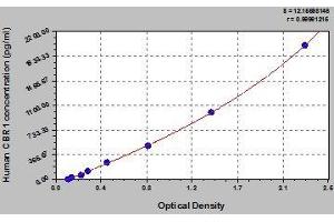 - Antibody specific for CBR1 has been pre-coated onto a microplate. Standards and samples are pipetted into the wells and any CBR1 present is bound by the immobilized antibody. After removing any unbound substances, a biotin-conjugated antibody specific for CBR1 is added to the wells. After washing, avidin conjugated Horseradish Peroxidase (HRP) is added to the wells. Following a wash to remove any unbound avidin-enzyme reagent, a substrate solution is added to the wells and color develops in proportion to the amount of CBR1 bound in the initial step. The color development is stopped and the intensity of the color is measured.