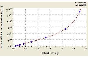 - Antibody specific for EPGN has been pre-coated onto a microplate. Standards and samples are pipetted into the wells and any EPGN present is bound by the immobilized antibody. After removing any unbound substances, a biotin-conjugated antibody specific for EPGN is added to the wells. After washing, avidin conjugated Horseradish Peroxidase (HRP) is added to the wells. Following a wash to remove any unbound avidin-enzyme reagent, a substrate solution is added to the wells and color develops in proportion to the amount of EPGN bound in the initial step. The color development is stopped and the intensity of the color is measured.