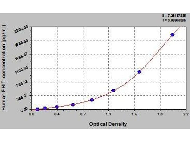 - Antibody specific for FHIT has been pre-coated onto a microplate. Standards and samples are pipetted into the wells and any FHIT present is bound by the immobilized antibody. After removing any unbound substances, a biotin-conjugated antibody specific for FHIT is added to the wells. After washing, avidin conjugated Horseradish Peroxidase (HRP) is added to the wells. Following a wash to remove any unbound avidin-enzyme reagent, a substrate solution is added to the wells and color develops in proportion to the amount of FHIT bound in the initial step. The color development is stopped and the intensity of the color is measured.