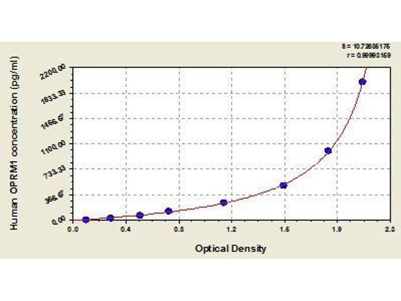 - Antibody specific for OPRM1 has been pre-coated onto a microplate. Standards and samples are pipetted into the wells and any OPRM1 present is bound by the immobilized antibody. After removing any unbound substances, a biotin-conjugated antibody specific for OPRM1 is added to the wells. After washing, avidin conjugated Horseradish Peroxidase (HRP) is added to the wells. Following a wash to remove any unbound avidin-enzyme reagent, a substrate solution is added to the wells and color develops in proportion to the amount of OPRM1 bound in the initial step. The color development is stopped and the intensity of the color is measured.