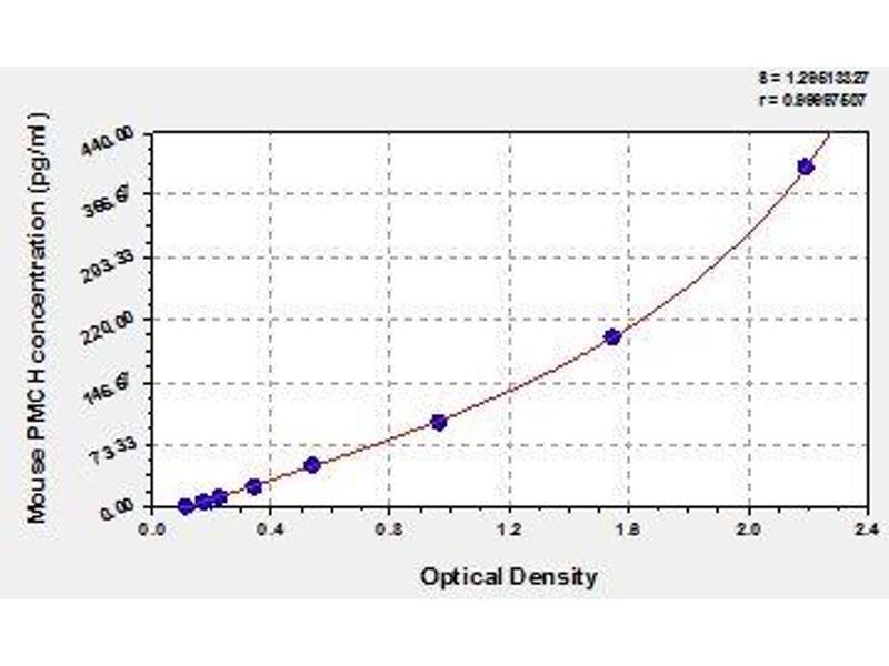 - Antibody specific for PMCH has been pre-coated onto a microplate. Standards and samples are pipetted into the wells and any PMCH present is bound by the immobilized antibody. After removing any unbound substances, a biotin-conjugated antibody specific for PMCH is added to the wells. After washing, avidin conjugated Horseradish Peroxidase (HRP) is added to the wells. Following a wash to remove any unbound avidin-enzyme reagent, a substrate solution is added to the wells and color develops in proportion to the amount of PMCH bound in the initial step. The color development is stopped and the intensity of the color is measured.