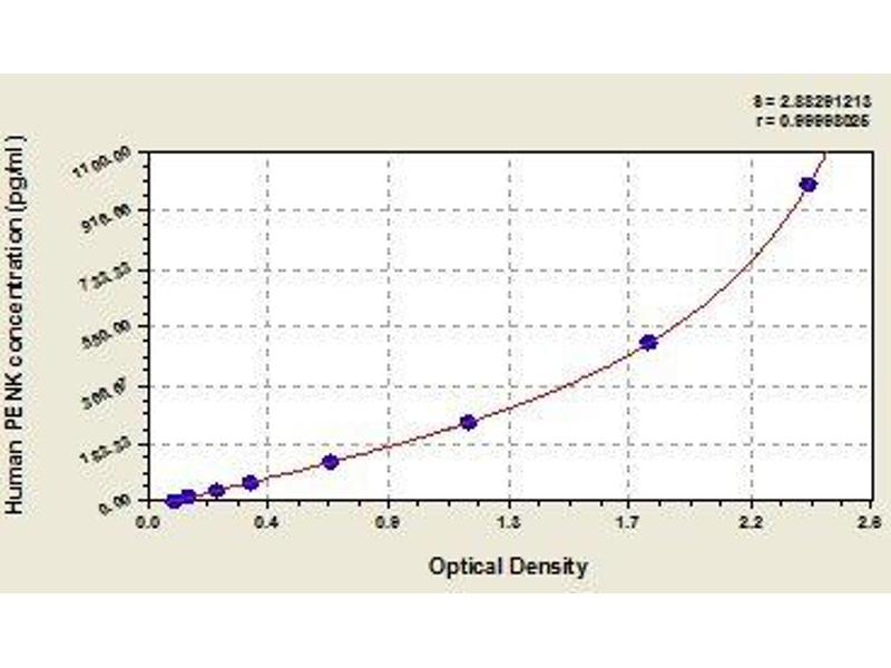 - This assay employs the quantitative sandwich enzyme immunoassay technique. Antibody specific for PENK has been pre-coated onto a microplate. Standards and samples are pipetted into the wells and any PENK present is bound by the immobilized antibody. After removing any unbound substances, a biotin-conjugated antibody specific for PENK is added to the wells. After washing, avidin conjugated Horseradish Peroxidase (HRP) is added to the wells. Following a wash to remove any unbound avidin-enzyme reagent, a substrate solution is added to the wells and color develops in proportion to the amount of PENK bound in the initial step. The color development is stopped and the intensity of the color is measured.