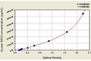 - This assay employs the quantitative sandwich enzyme immunoassay technique. Antibody specific for SDC2 has been pre-coated onto a microplate. Standards and samples are pipetted into the wells and any SDC2 present is bound by the immobilized antibody. After removing any unbound substances, a biotin-conjugated antibody specific for SDC2 is added to the wells. After washing, avidin conjugated Horseradish Peroxidase (HRP) is added to the wells. Following a wash to remove any unbound avidin-enzyme reagent, a substrate solution is added to the wells and color develops in proportion to the amount of SDC2 bound in the initial step. The color development is stopped and the intensity of the color is measured.