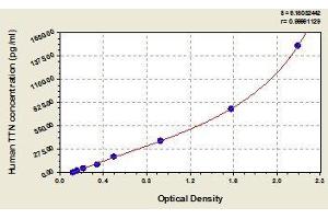 - This assay employs the quantitative sandwich enzyme immunoassay technique. Antibody specific for TTN has been pre-coated onto a microplate. Standards and samples are pipetted into the wells and any TTN present is bound by the immobilized antibody. After removing any unbound substances, a biotin-conjugated antibody specific for TTN is added to the wells. After washing, avidin conjugated Horseradish Peroxidase (HRP) is added to the wells. Following a wash to remove any unbound avidin-enzyme reagent, a substrate solution is added to the wells and color develops in proportion to the amount of TTN bound in the initial step. The color development is stopped and the intensity of the color is measured.