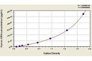 - Antibody specific for GRN has been pre-coated onto a microplate. Standards and samples are pipetted into the wells and any GRN present is bound by the immobilized antibody. After removing any unbound substances, a biotin-conjugated antibody specific for GRN is added to the wells. After washing, avidin conjugated Horseradish Peroxidase (HRP) is added to the wells. Following a wash to remove any unbound avidin-enzyme reagent, a substrate solution is added to the wells and color develops in proportion to the amount of GRN bound in the initial step. The color development is stopped and the intensity of the color is measured.