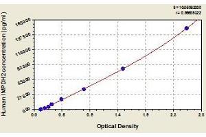- This assay employs the quantitative sandwich enzyme immunoassay technique. Antibody specific for IMP (Inosine Monophosphate) Dehydrogenase 2 (IMPDH2) has been pre-coated onto a microplate. Standards and samples are pipetted into the wells and any IMP (Inosine Monophosphate) Dehydrogenase 2 (IMPDH2) present is bound by the immobilized antibody. After removing any unbound substances, a biotin-conjugated antibody specific for IMP (Inosine Monophosphate) Dehydrogenase 2 (IMPDH2) is added to the wells. After washing, avidin conjugated Horseradish Peroxidase (HRP) is added to the wells. Following a wash to remove any unbound avidin-enzyme reagent, a substrate solution is added to the wells and color develops in proportion to the amount of IMP (Inosine Monophosphate) Dehydrogenase 2 (IMPDH2) bound in the initial step. The color development is stopped and the intensity of the color is measured.