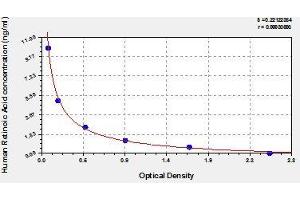 - This assay employs the competitive inhibition enzyme immunoassay technique. The microtiter plate provided in this kit has been pre-coated with an antibody specific to retinoic acid. Standards or samples are added to the appropriate microtiter plate wells with Horseradish Peroxidase (HRP) conjugated retinoic acid. The competitive inhibition reaction is launched between with HRP-conjugated retinoic acid and retinoic acid in samples. A substrate solution is added to the wells and the color develops in opposite to the amount of retinoic acid in the sample. The color development is stopped and the intensity of the color is measured.