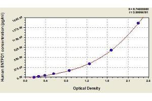 - Antibody specific for ENTPD1 has been pre-coated onto a microplate. Standards and samples are pipetted into the wells and any ENTPD1 present is bound by the immobilized antibody. After removing any unbound substances, a biotin-conjugated antibody specific for ENTPD1 is added to the wells. After washing, avidin conjugated Horseradish Peroxidase (HRP) is added to the wells. Following a wash to remove any unbound avidin-enzyme reagent, a substrate solution is added to the wells and color develops in proportion to the amount of ENTPD1 bound in the initial step. The color development is stopped and the intensity of the color is measured.