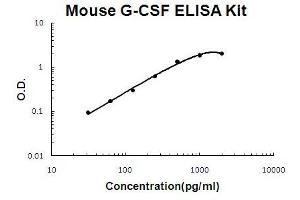 - mouse G-CSF ELISA Kit was based on standard sandwich enzyme-linked immune-sorbent assay technology. A monoclonal antibody from rat specific for G-CSF has been precoated onto 96-well plates. Standards(E.coli, V31-A208) and test samples are added to the wells, a biotinylated detection polyclonal antibody from goat specific for G-CSF is added subsequently and then followed by washing with PBS or TBS buffer. Avidin-Biotin-Peroxidase Complex was added and unbound conjugates were washed away with PBS or TBS buffer. HRP substrate TMB was used to visualize HRP enzymatic reaction. TMB was catalyzed by HRP to produce a blue color product that changed into yellow after adding acidic stop solution. The density of yellow is proportional to the mouse G-CSF amount of sample captured in plate.