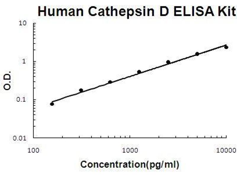 Background: Cathepsin D is a protein that in humans is encoded by the CTSD gene. This proteinase is a member of the peptidase C1 family, having a specificity similar to but narrower than that of pepsin A. It is mapped to 11p15.5. The cDNA encodes a 412-amino acid protein with 20 and 44 amino acids in a pre- and prosegment, respectively. Cathepsin D is one of the lysosomal proteinases. It is ubiquitously expressed and is involved in proteolytic degradation, cell invasion, and apoptosis. Mutations in this gene are involved in the pathogenesis of several diseases, including breast cancer and possibly Alzheimer disease and it has been considered as a breast cancer tumor marker.