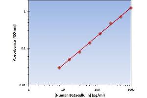 - The Human Betacellulin ELISA Kit allows for the detection and quantification of endogenous levels of natural and/or recombinant Human Betacellulin proteins within the range of 8-1000 pg/mL.