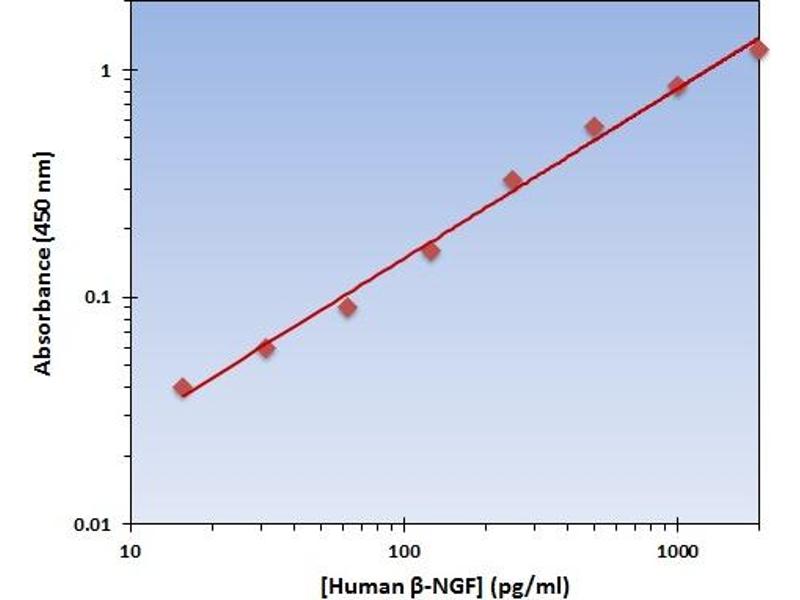 - The Human beta-NGF ELISA Kit allows for the detection and quantification of endogenous levels of natural and/or recombinant Human beta-NGF proteins within the range of 16-2000 pg/mL.