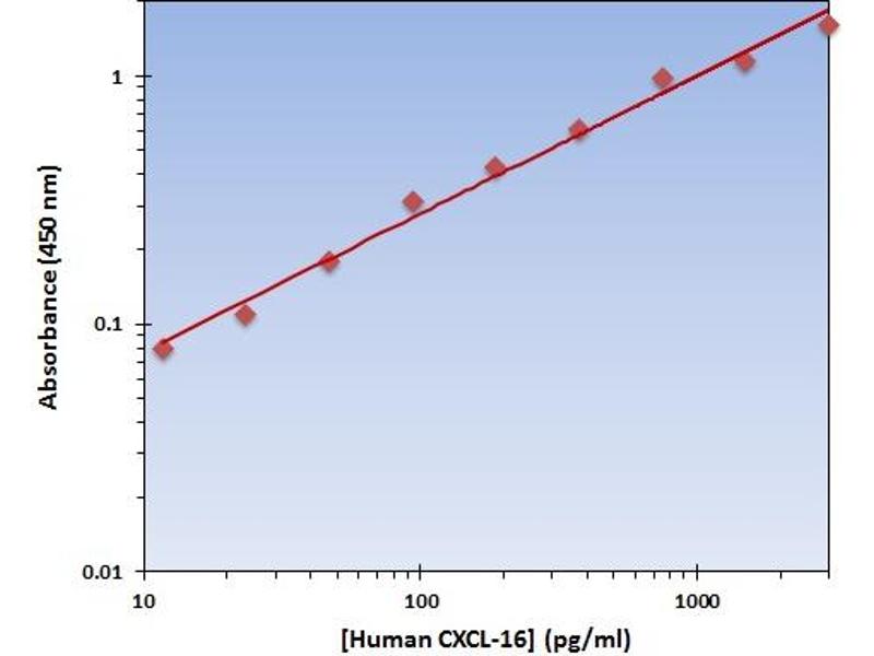 - The Human CXCL-16 ELISA Kit allows for the detection and quantification of endogenous levels of natural and/or recombinant Human CXCL-16 proteins within the range of 12-3000 pg/mL.