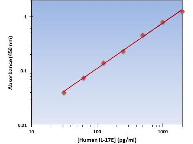 - The Human IL-17E ELISA Kit allows for the detection and quantification of endogenous levels of natural and/or recombinant Human IL-17E proteins within the range of 32-2000 pg/mL.