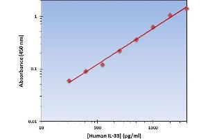 - The Human IL-33 ELISA Kit allows for the detection and quantification of endogenous levels of natural and/or recombinant Human IL-33 proteins within the range of 32-4000 pg/mL.