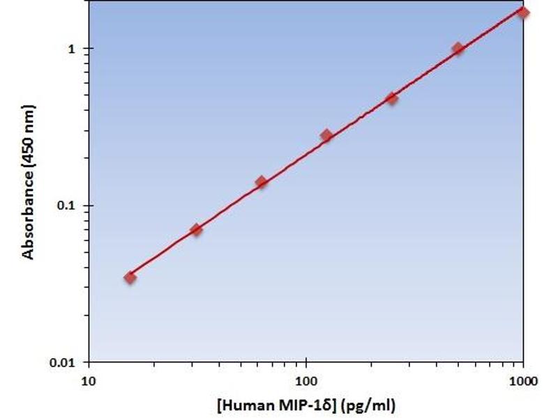 - The Human MIP-1delta ELISA Kit allows for the detection and quantification of endogenous levels of natural and/or recombinant Human MIP-1delta proteins within the range of 16-1000 pg/mL.