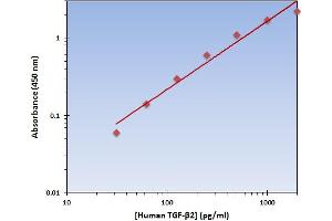 - The Human TGF-beta2 ELISA Kit allows for the detection and quantification of endogenous levels of natural and/or recombinant Human TGF-beta2 proteins within the range of 32-2000 pg/mL.