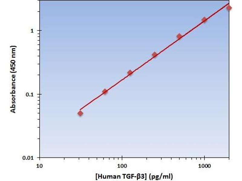 - The Human TGF-beta3 ELISA Kit allows for the detection and quantification of endogenous levels of natural and/or recombinant Human TGF-beta3 proteins within the range of 32-2000 pg/mL.