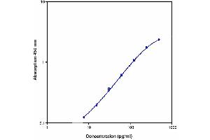 Create a calibration curve by plotting the mean absorbance for each calibrator concentration on the ordinate against the sCD40 concentration on the abscissa. Draw a best-fit curve through the points of the graph (a 5-parameter curve fit is recommended).