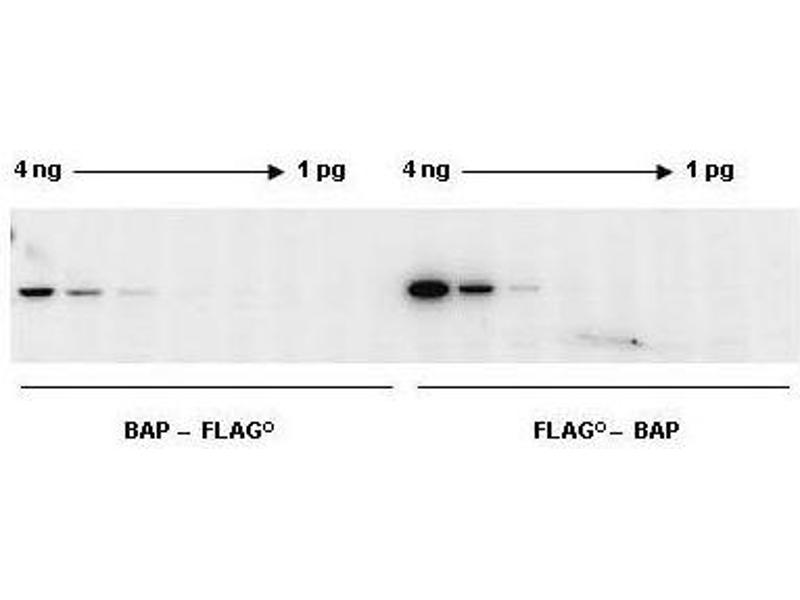 The DYKDDDDK epitope is a small but highly immunogenic peptide DYKDDDDK (N-Asp-Tyr-Lys-Asp-Asp-Asp-Asp-Lys-C) which allows fusion proteins to retain their original conformation and function. The hydrophilic character of this sequence increases the likelihood that it will be located on the surface of DYKDDDDK -tagged recombinant proteins for reaction with anti-DYKDDDDK antibodies. The anti-DYKDDDDK antibody included in this Western blot kit detects DYKDDDDK -tagged recombinant proteins fused with DYKDDDDK tag either at the amino-terminus or carboxy-terminus of the protein.