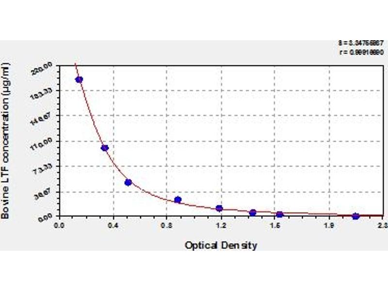 LTF Reactivity: Cow Colorimetric Competition ELISA 3.12 μg/mL - 200 μg/mL Milk
