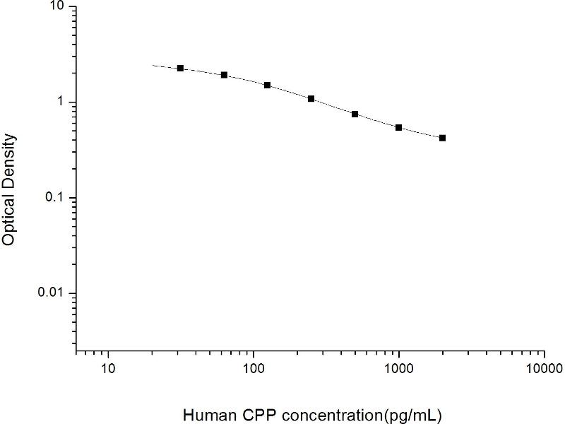 CPP Reactivity: Human Colorimetric Competition ELISA 31.25 pg/mL - 2000 pg/mL Cell Culture Supernatant, Plasma, Serum
