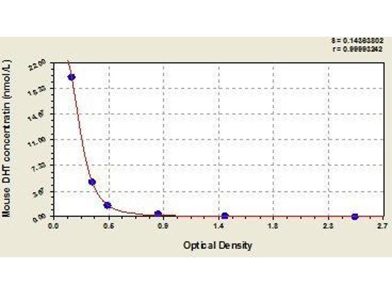 DHT Reactivity: Mouse Colorimetric Competition ELISA 0.1-20 nM/L Plasma, Serum, Tissue Homogenate
