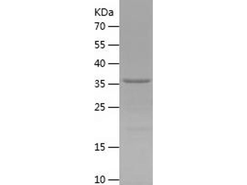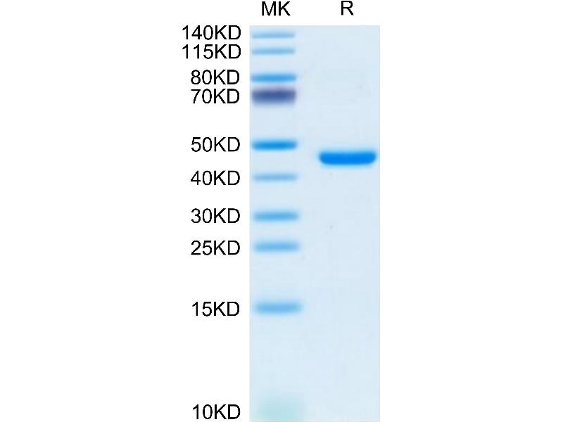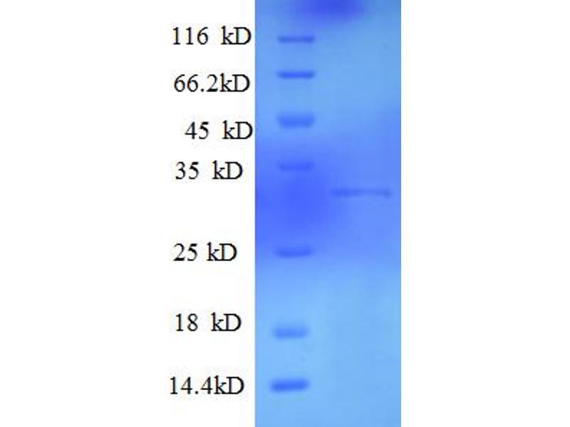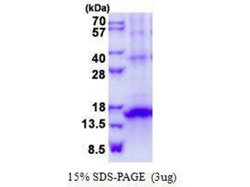 The purity of the protein is greater than 90 % as determined by SDS-PAGE and Coomassie blue staining.