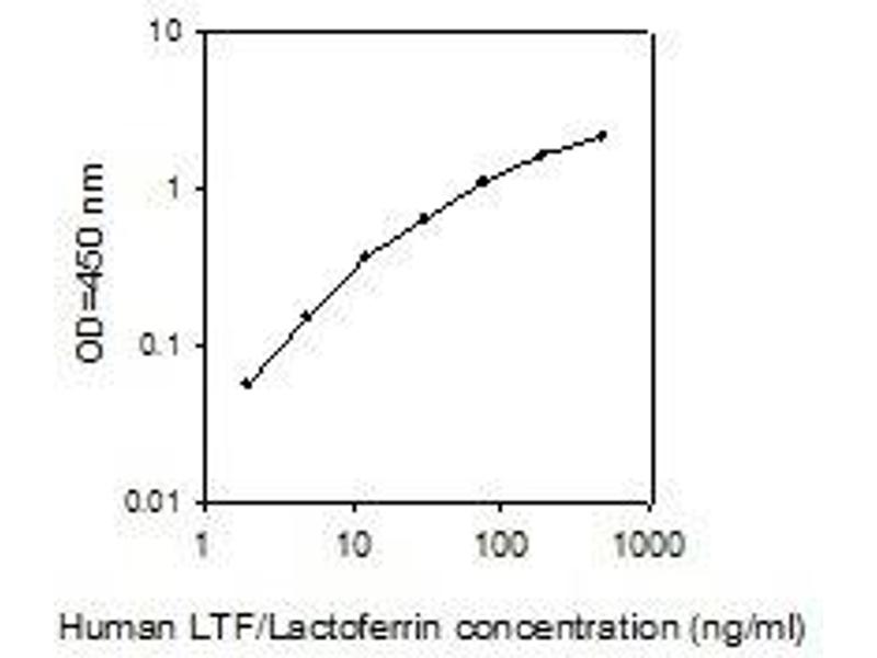 LTF Reactivity: Human Colorimetric Sandwich ELISA 0.78 ng/mL - 50 ng/mL Cell Culture Supernatant, Cell Lysate, Plasma, Serum, Tissue Homogenate