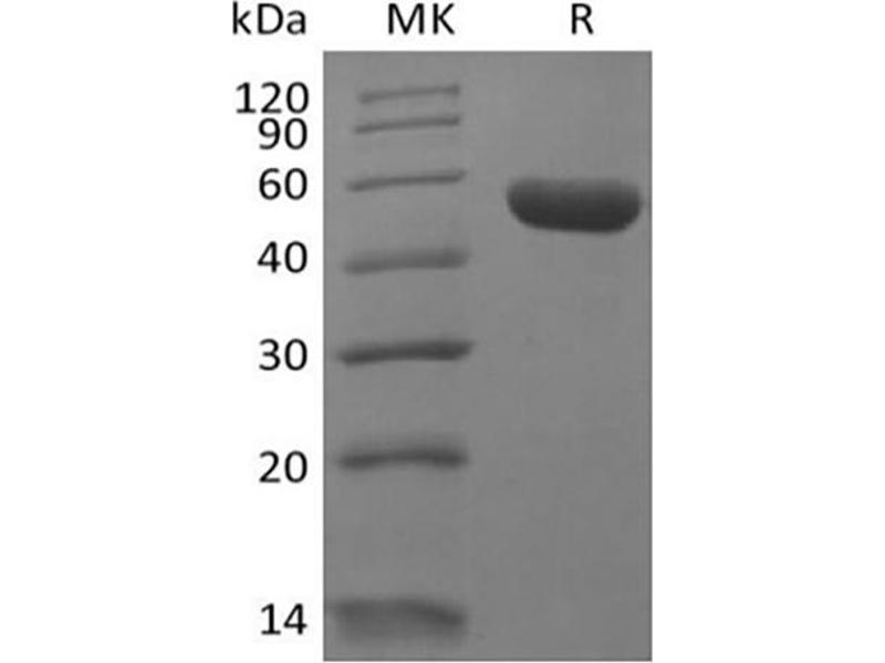 The purity of the protein is greater than 95 % as determined by SDS-PAGE and Coomassie blue staining.
