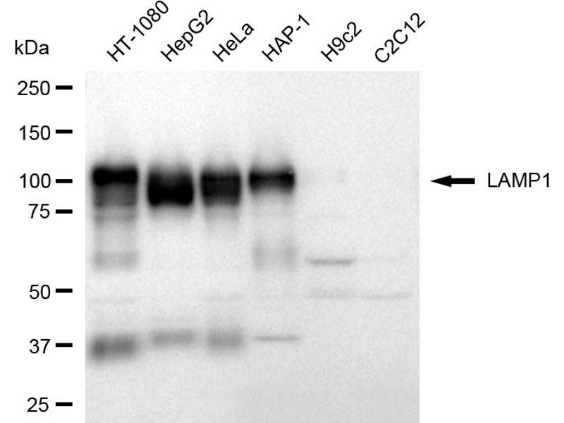 LAMP1 Reactivity: Human, Mouse, Rat, Monkey WB, ELISA, IHC (p), IHC (fro) Host: Rabbit Polyclonal HRP