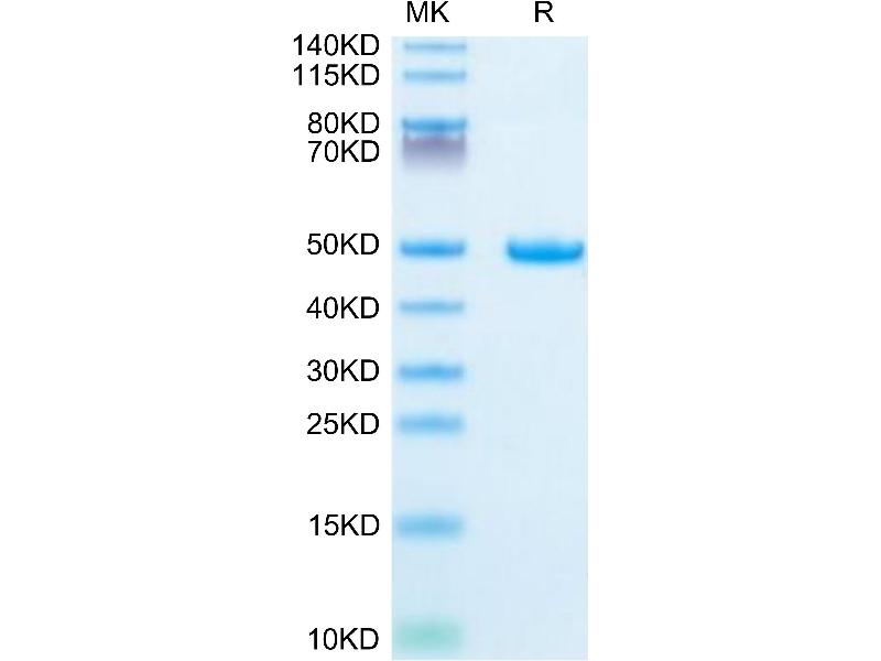 The purity of the protein is greater than 95 % as determined by SDS-PAGE and Coomassie blue staining.