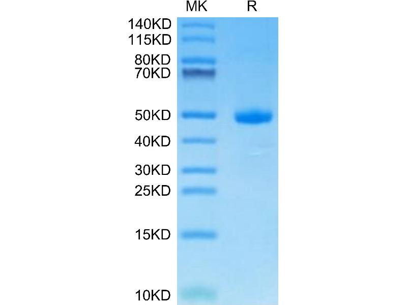 The purity of the protein is greater than 95 % as determined by SDS-PAGE and Coomassie blue staining.