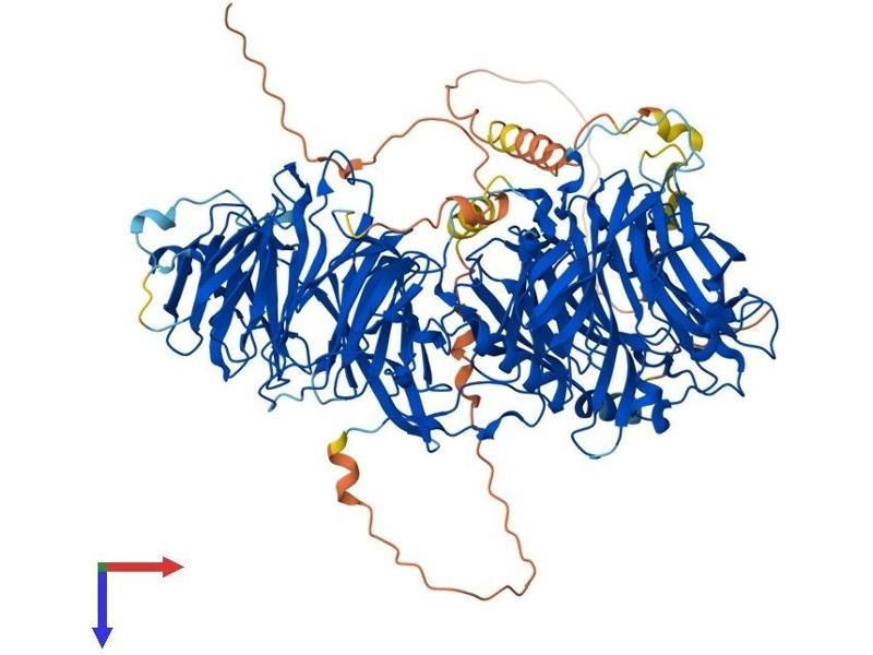 The lethal (2) giant larvae protein of Drosophila plays a role in asymmetric cell division, epithelial cell polarity, and cell migration. This human gene encodes a protein similar to lethal (2) giant larvae of Drosophila. In fly, the protein's ability to localize cell fate determinants is regulated by the atypical protein kinase C (aPKC). In human, this protein interacts with aPKC-containing complexes and is cortically localized in mitotic cells. Alternative splicing results in multiple transcript variants encoding different isoforms. [provided by RefSeq, Jul 2008].