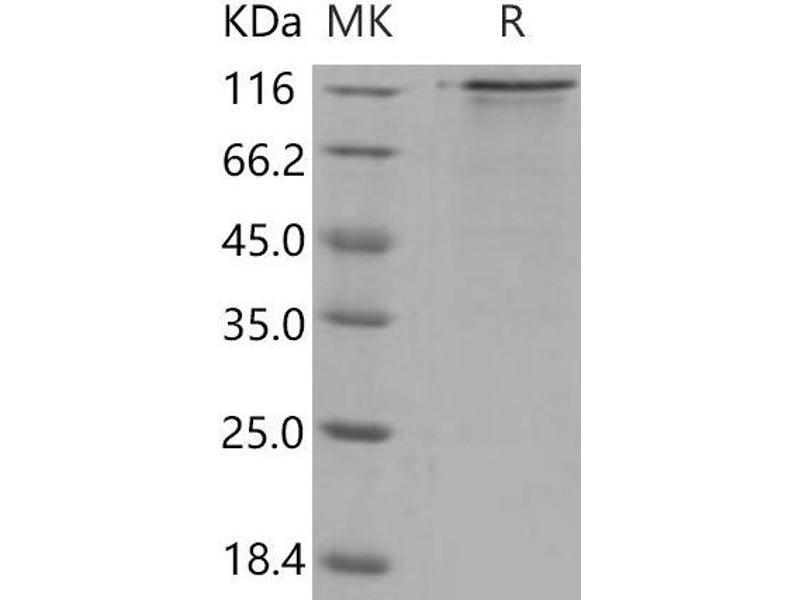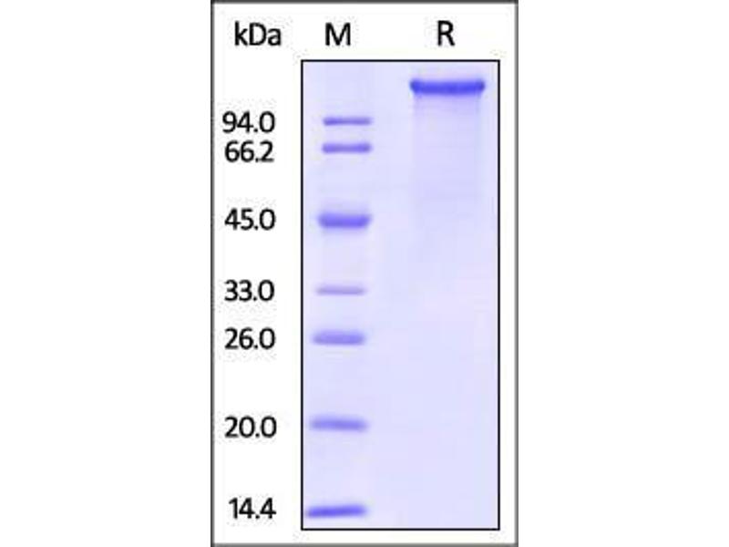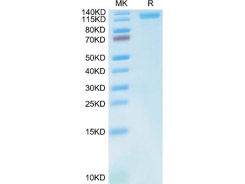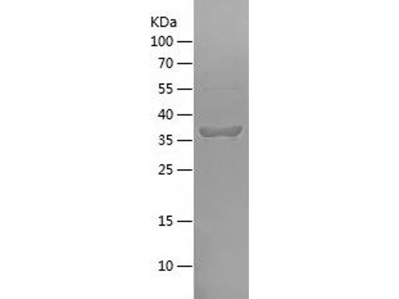 The purity of the protein is greater than 85 % as determined by SDS-PAGE and Coomassie blue staining.
