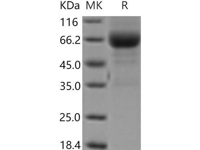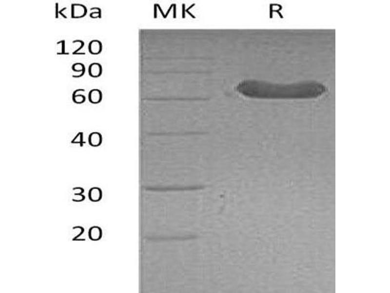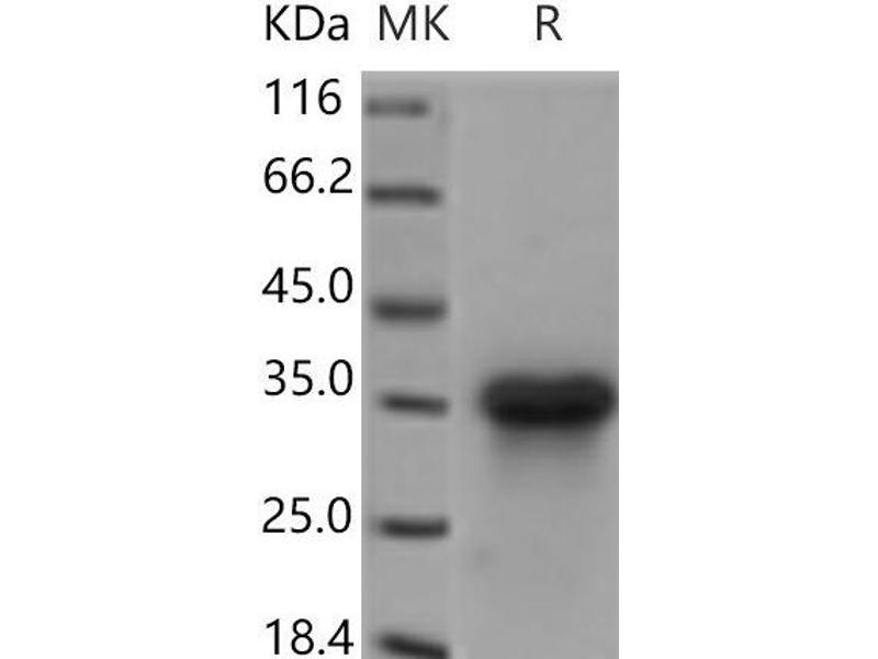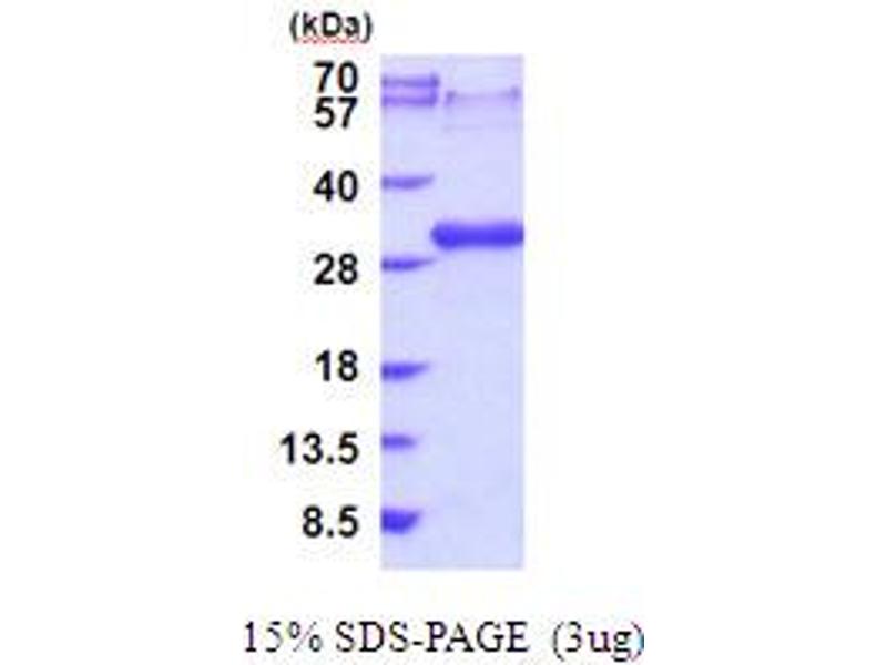 The purity of the protein is greater than 95 % as determined by SDS-PAGE and Coomassie blue staining.